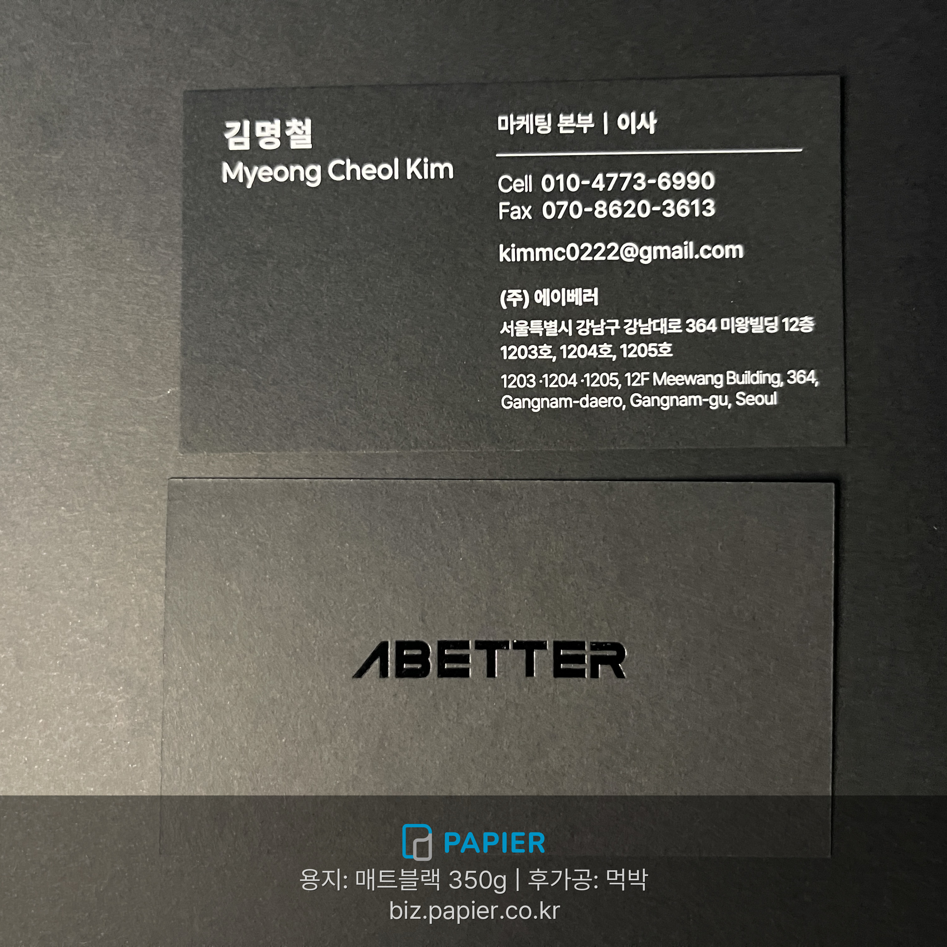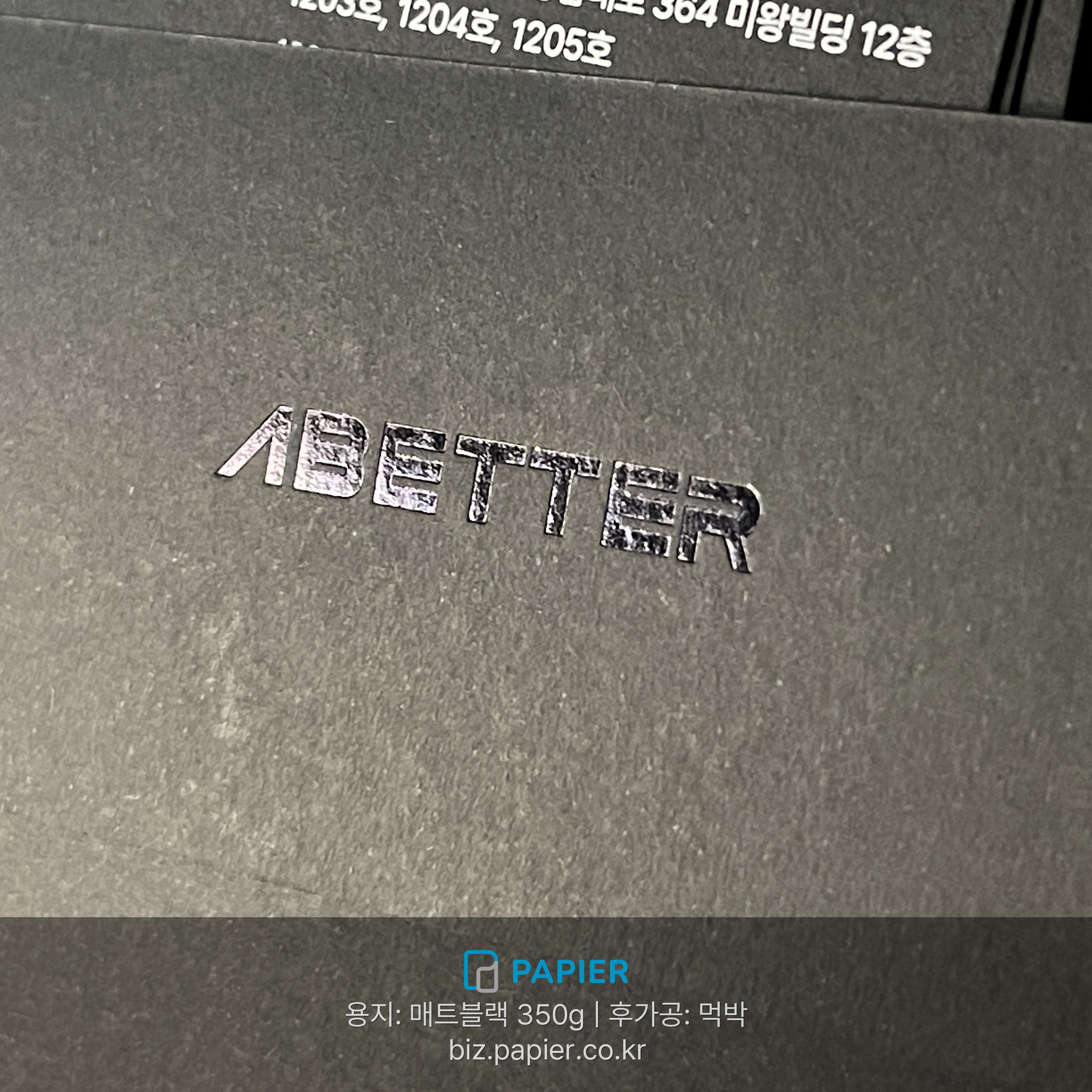 매트블랙 350g 용지 먹박 후가공 백색 인쇄 명함 제작 사례