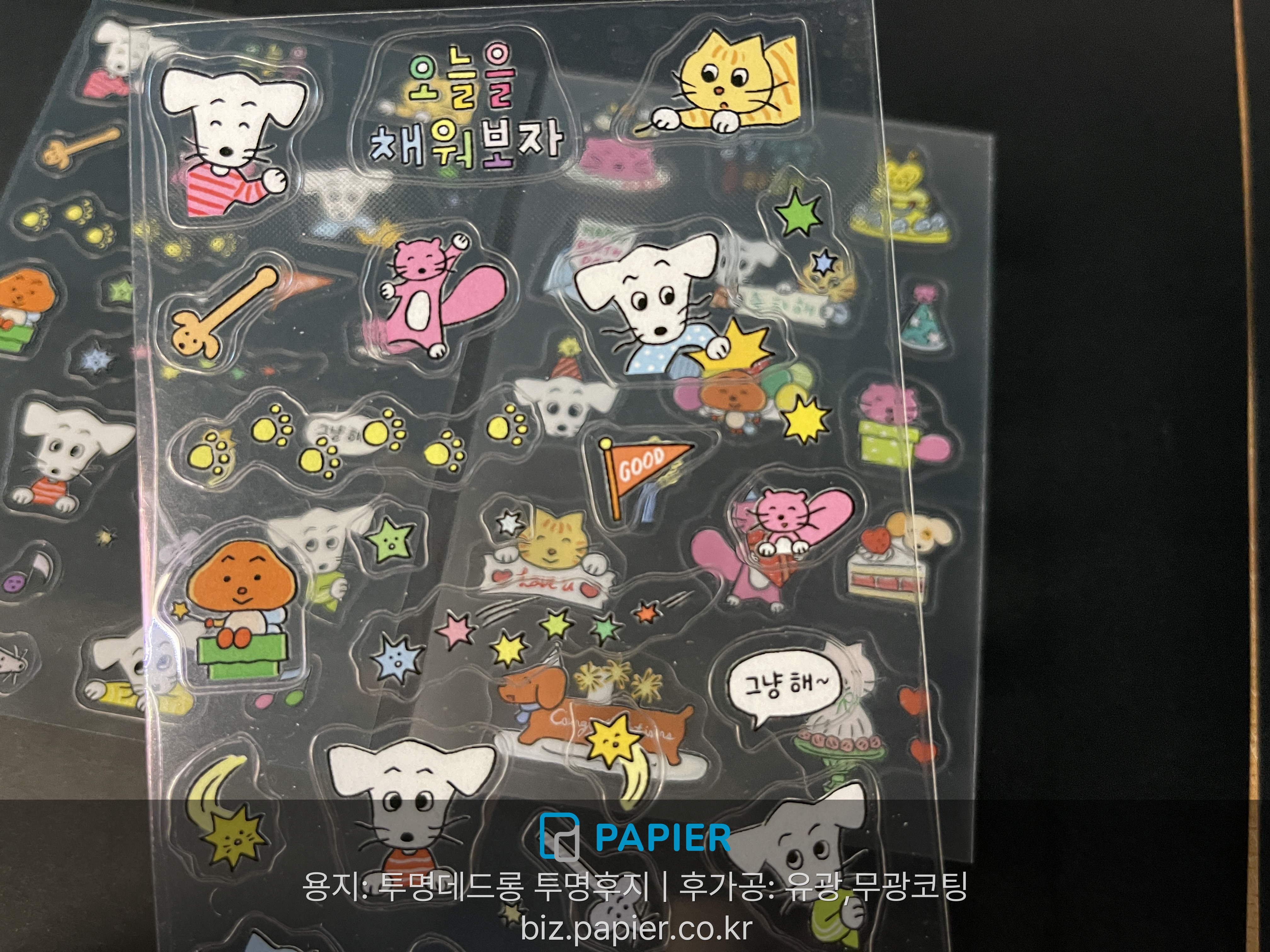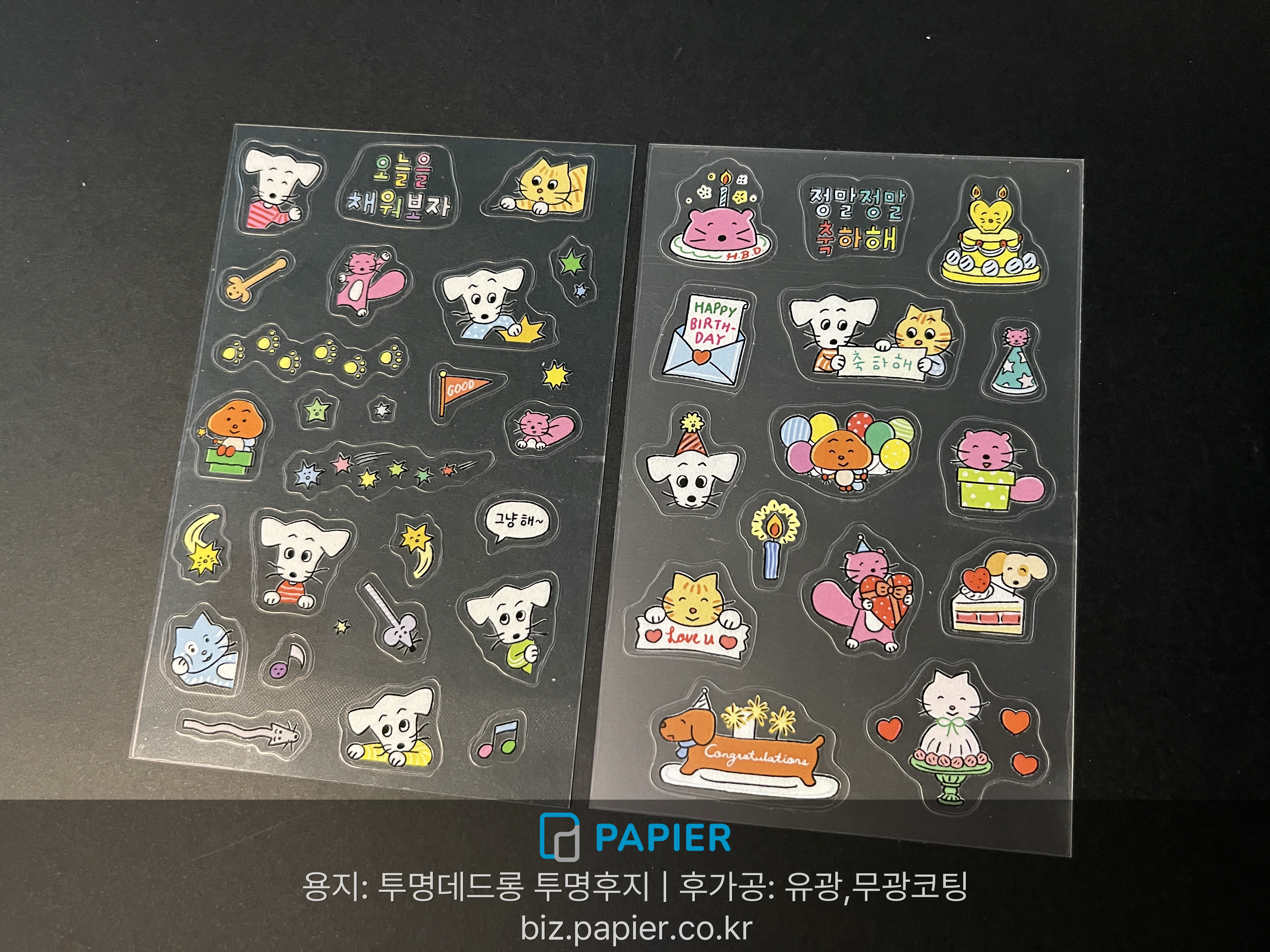 투명 PET 소재 칼라 인쇄와 백색 인쇄를 적용한 판스티커 제작 사례