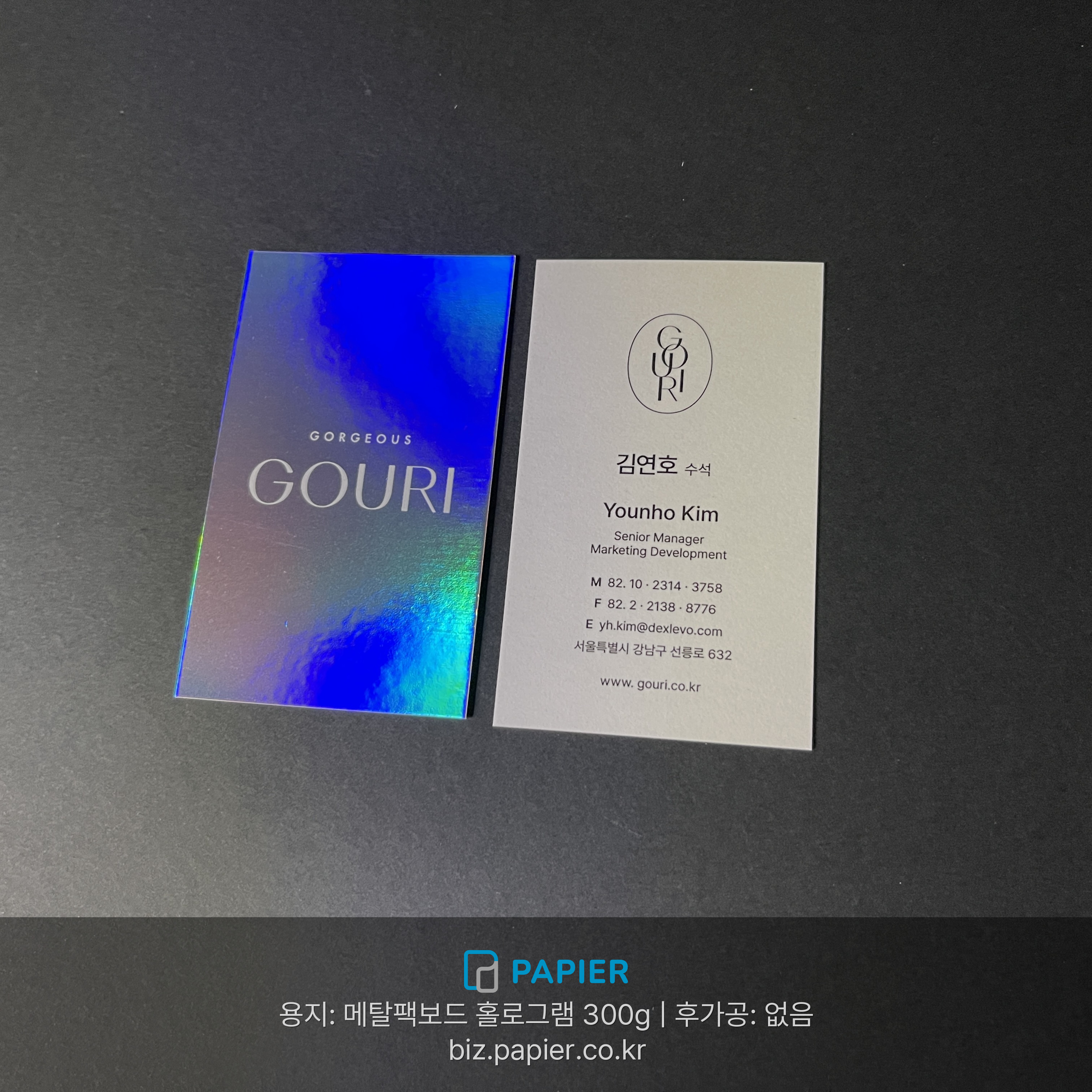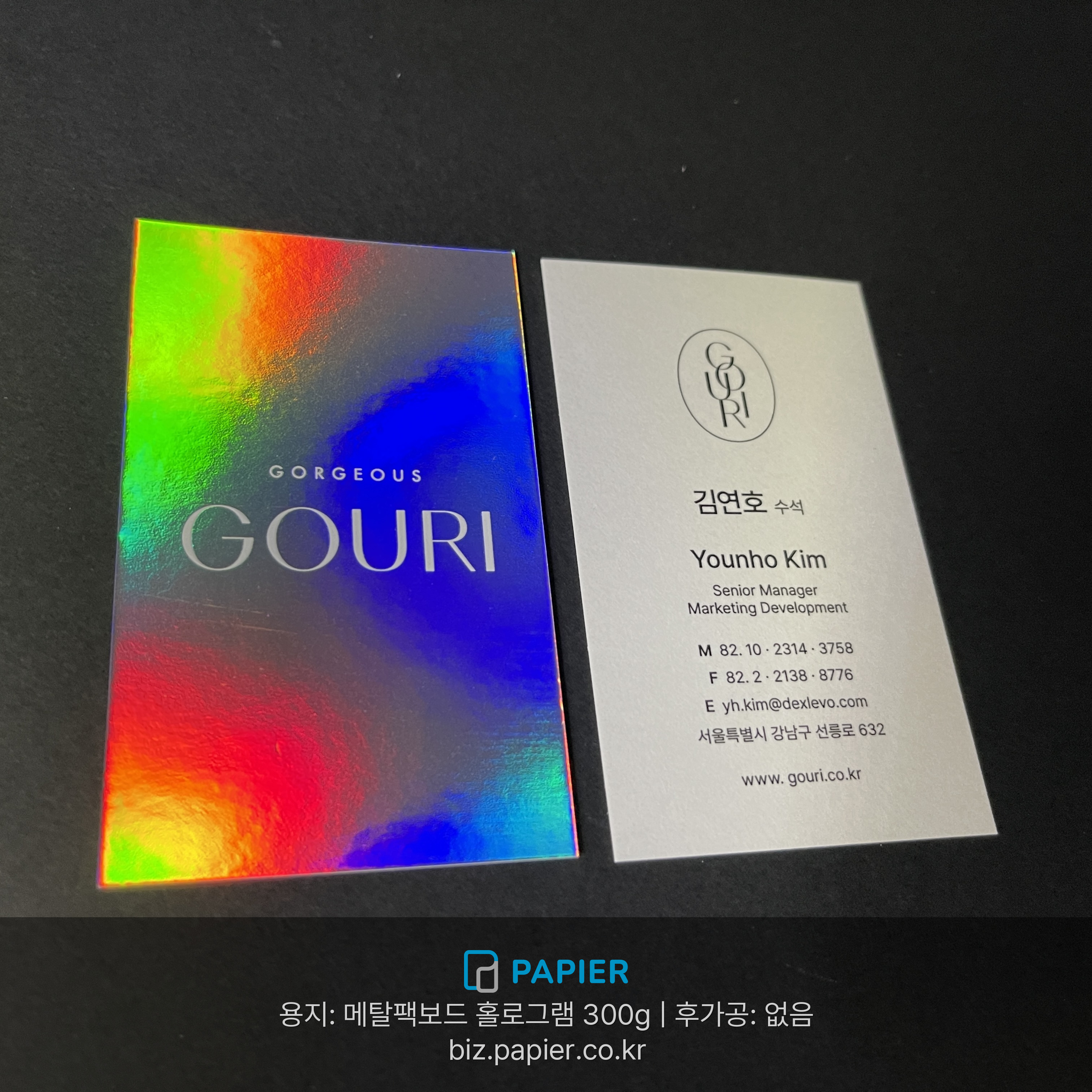 홀로그램 메탈팩보드 300g 종이에 칼라와 백색 인쇄를 적용한 특수지 인쇄 샘플